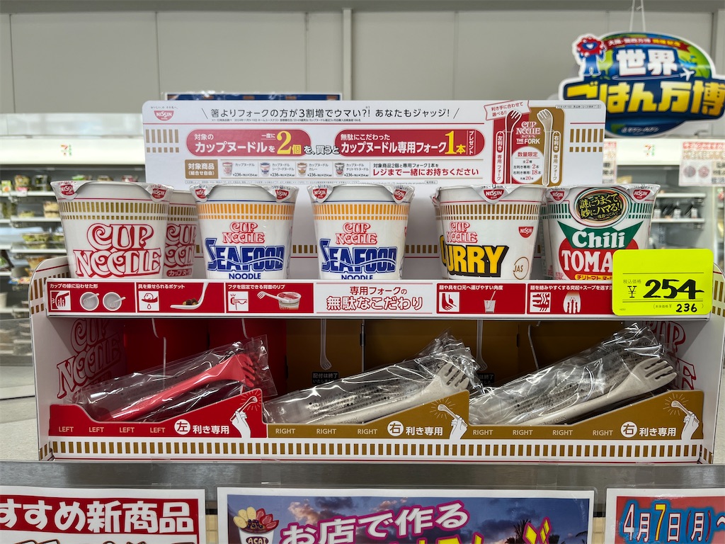 先日、セブンイレブンで行っているカップヌードルのキャンペーンの【左利き専用フォーク】が手に入らないと書きました。